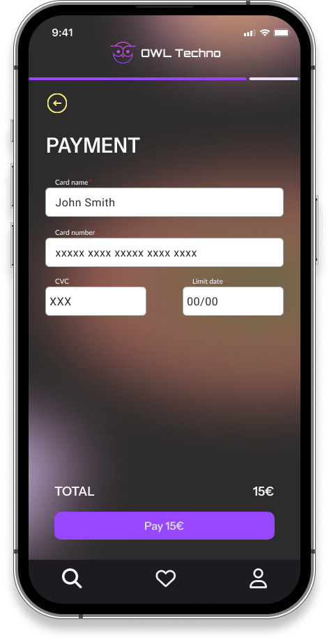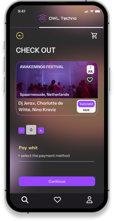 Subtle animations—such as swipe effects, button hovers, and confirmation highlights—add a sense of rhythm and energy, echoing the pulsating beats of techno music. These details not only make the process functional but also evoke positive emotions, turning the act of buying tickets into a delightful experience.